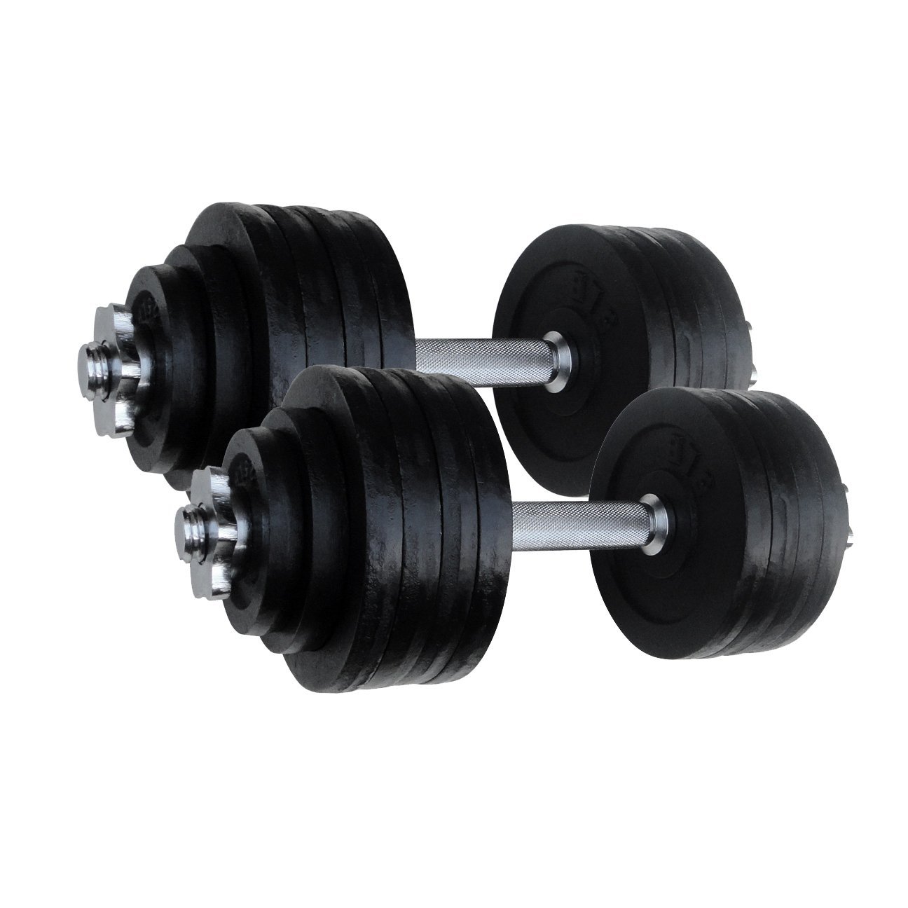 Dumbbells can be used in multi-training process. Better to get 2 pairs of different weights, for beginners 1pair of 10 pounds and 1pair of 20pounds. And barbell with weight plate set. You can purchase it in any fitness store or online. You can also purchase the plates separately.